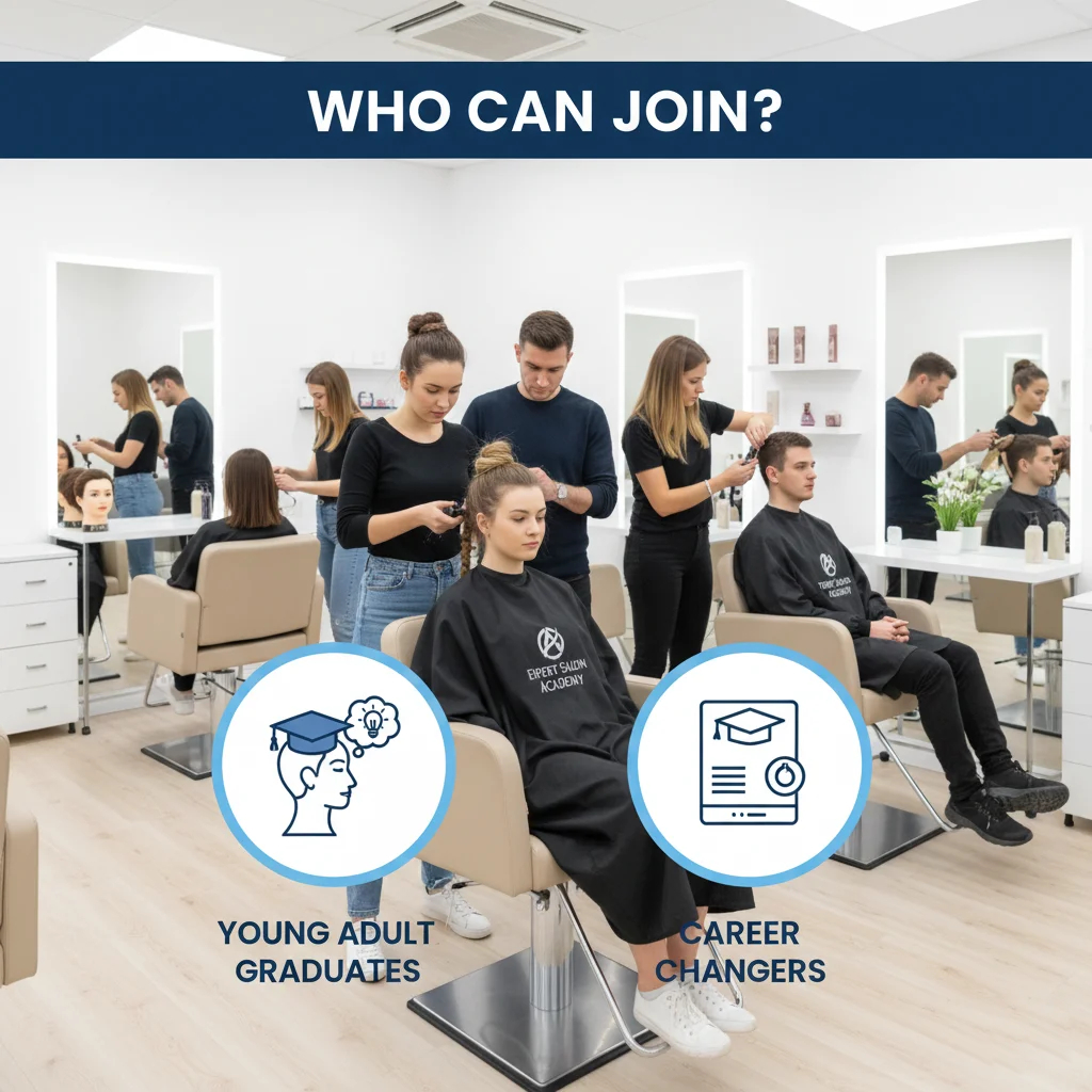 At EXPERT HAIR SKIN SALON & ACADEMY, we believe that talent has no age and passion has no limits. Our academy is designed for young individuals, homemakers, and anyone between 18 to 40 years who dreams of building a successful, creative, and financially independent career in hair dressing.